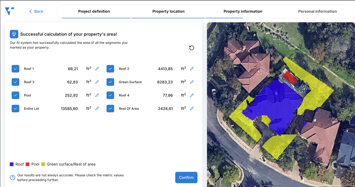 Why it matters: High-resolution, accurate property location marking helps ensure proposals are based on the right roof, land area, or installation spot.